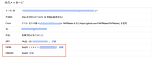 gmailの場合、届いたメールの「︙」から「メッセージのソースを表示」を押す。