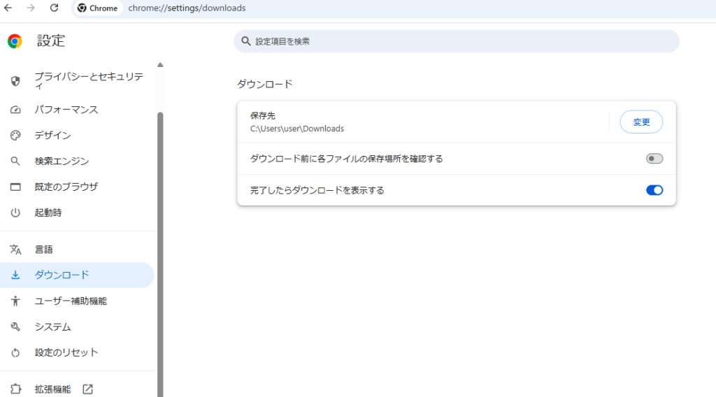 3. 「ダウンロード前に各ファイルの保存場所を確認する」にチェックが入っていないか確認。